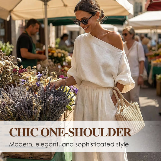 🎁NOUVEAUTÉ -60%💥Ensemble asymétrique haut à une épaule et pantalon pour femme