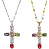 Collier avec Pendentif en Croix en Strass Colorés