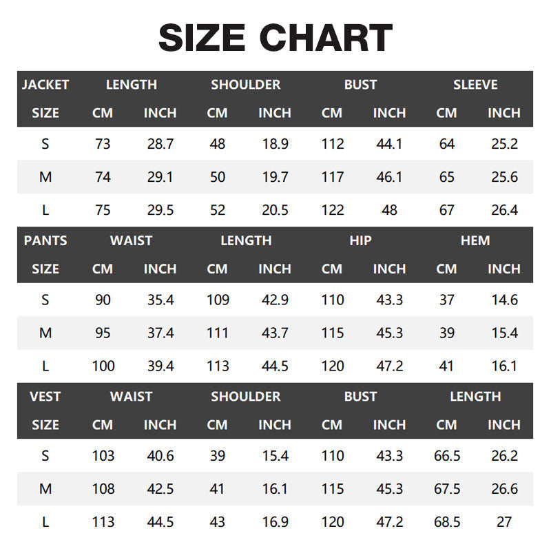 ENSEMBLE 3 PIÈCES - Comprend une veste, un gilet et un pantalon assortis pour un look complet et coordonné. Cela vous fait gagner du temps et de l'énergie lors de la composition de votre tenue, vous assurant une apparence toujours soignée et élégante pour tout événement formel.