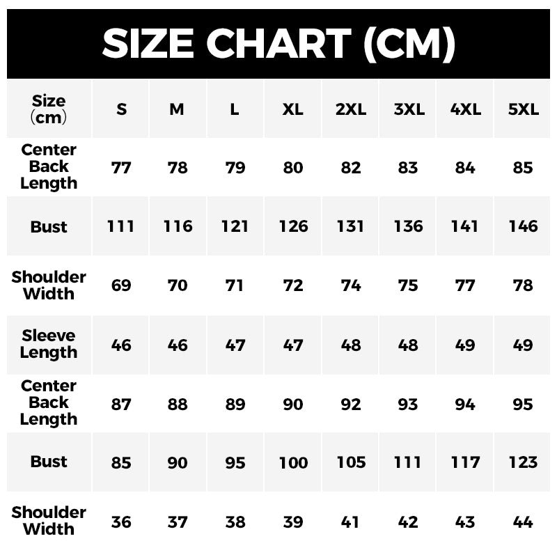 Tailles : S, M, L, XL, 2XL, 3XL, 4XL, 5XL