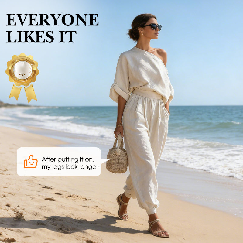 🎁NOUVEAUTÉ -60%💥Ensemble asymétrique haut à une épaule et pantalon pour femme