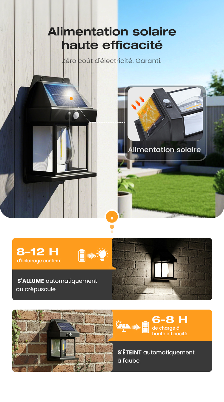 🔈🔈Black Friday : 60 % de réduction sur tout ! 🔥– Applique murale solaire à détecteur de mouvement en tungstène : zéro électricité, 12h d’autonomie & IP65 ! 🌙
